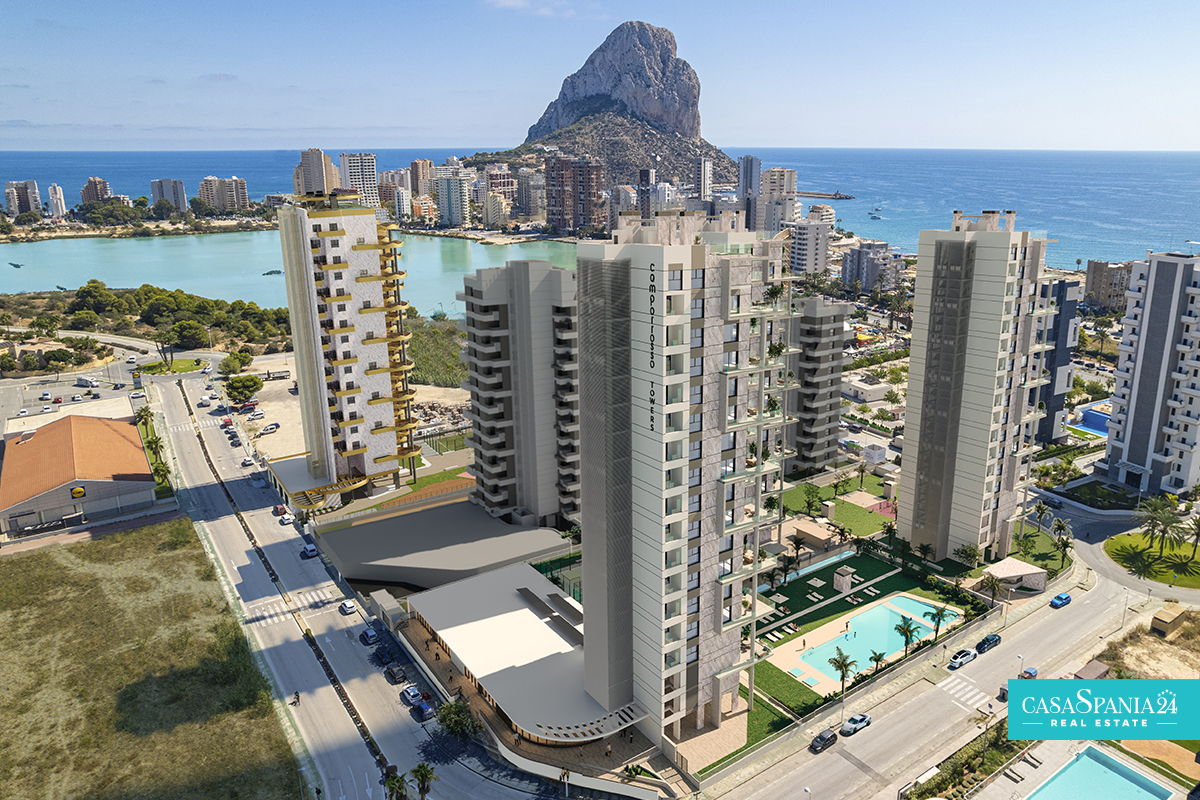 En el corazón de Calpe, con vistas al mar y bajo la imponente silueta del Peñón de Ifach, este nuevo proyecto residencial eleva el concepto de bienestar y exclusividad. 96 viviendas residenciales distribuidas en tres esbeltas y luminosas torres que albergan apartamentos de líneas limpias y terrazas abiertas al horizonte, ofreciendo vistas inigualables al mar, la laguna y las montañas que abrazan la Costa Blanca. Cada espacio ha sido diseñado para disfrutar de la comodidad, la tranquilidad y la belleza de cada amanecer.
