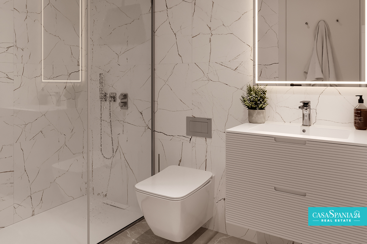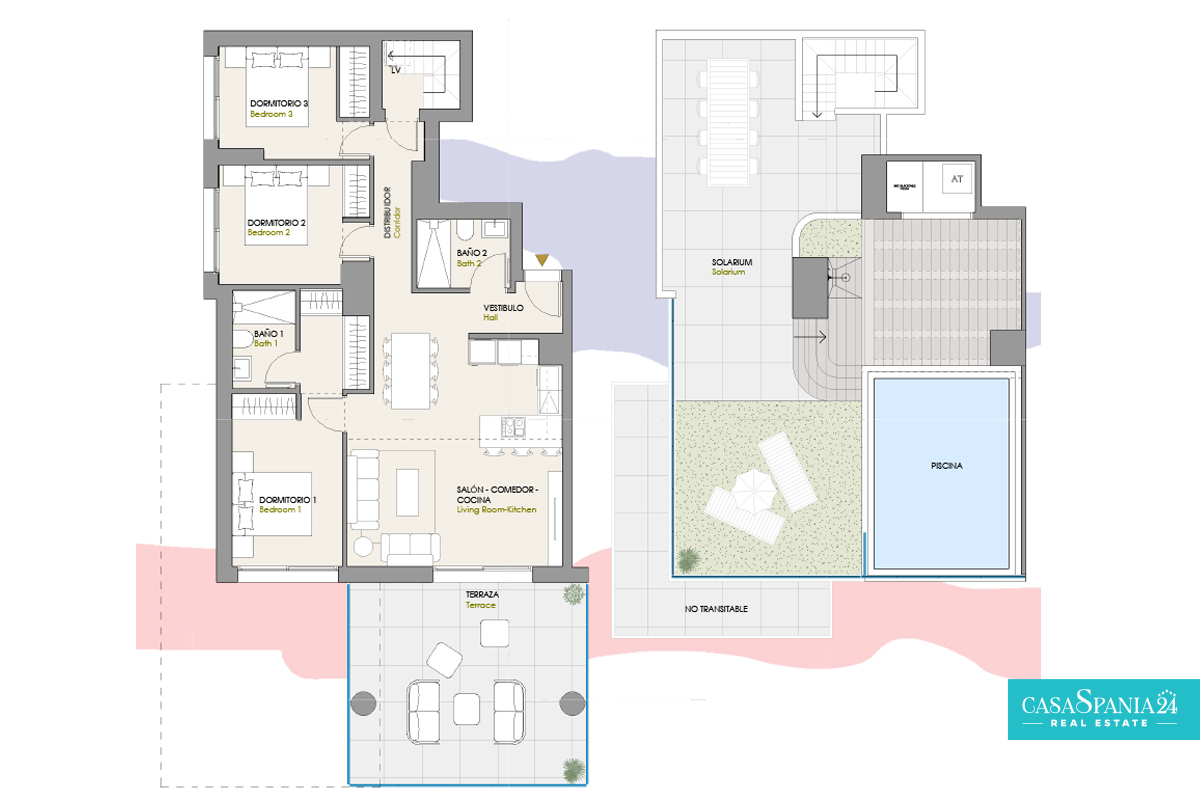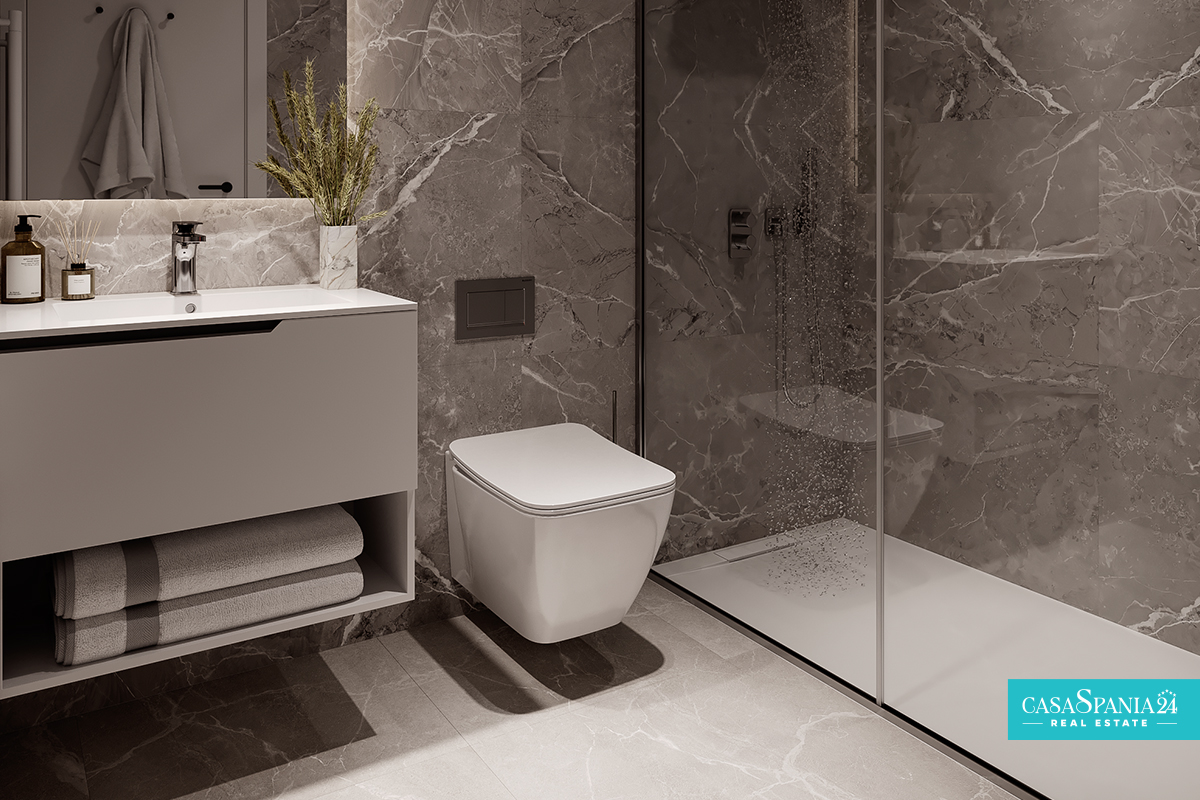 Descubra la comodidad de un elegante apartamento de 3 dormitorios, 2 baños, salón con cocina integrada, una espectacular terraza de 27 m² y un solárium de 84 m² en la planta superior, ideal para sus momentos de relax. La vivienda cuenta con una plaza de aparcamiento y un trastero en el sótano. El garaje contará con preinstalación para la carga de vehículos eléctricos, de acuerdo con la normativa vigente. El acceso al complejo cuenta con una puerta automática con mando a distancia.