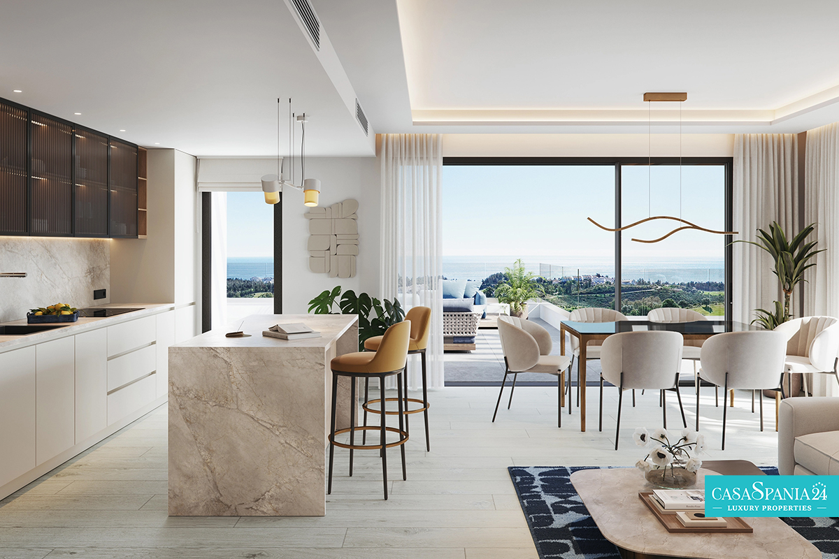El apartamento disfruta de espectaculares vistas al mar y a la montaña y se encuentra en primera línea del campo de golf, ofreciendo un entorno exclusivo y relajante. Los materiales de primera calidad y un diseño cuidadosamente seleccionado se complementan con detalles de confort, como la calefacción por suelo radiante eléctrico en los baños, que aportan un toque de refinamiento y bienestar.