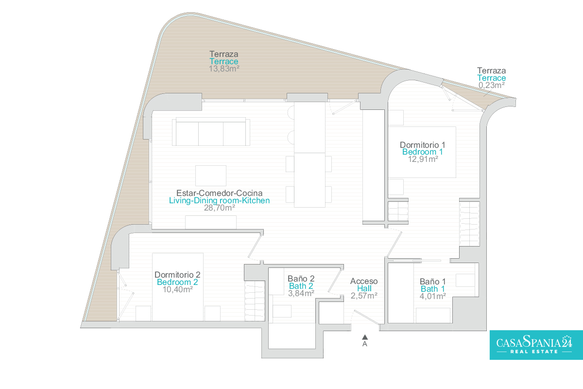 El apartamento de 2 dormitorios, 2 baños, salón con cocina abierta y una terraza de 14 m² es la opción perfecta para quienes buscan comodidad, elegancia y funcionalidad en un espacio moderno. La amplia terraza ofrece un espacio ideal para relajarse, donde podrá disfrutar del aire libre y las vistas, complementando armoniosamente el estilo de vida urbano y moderno.