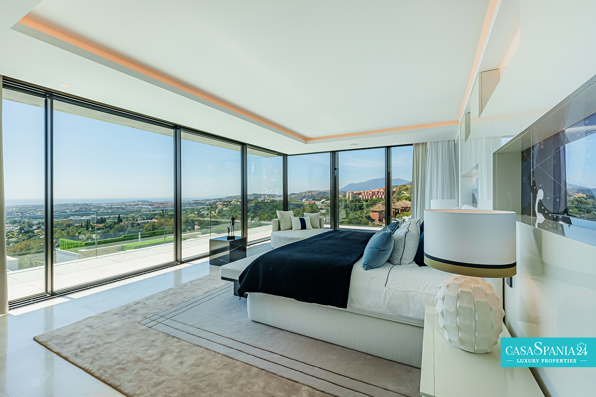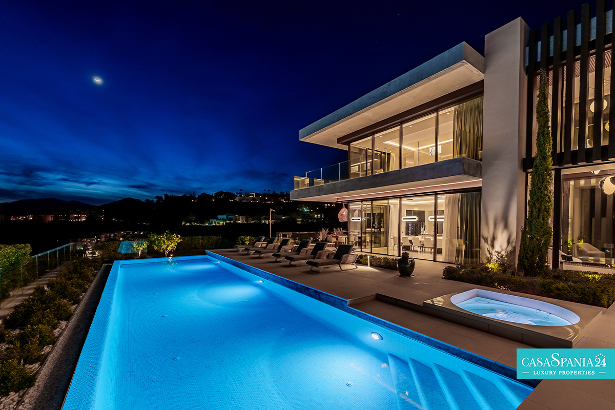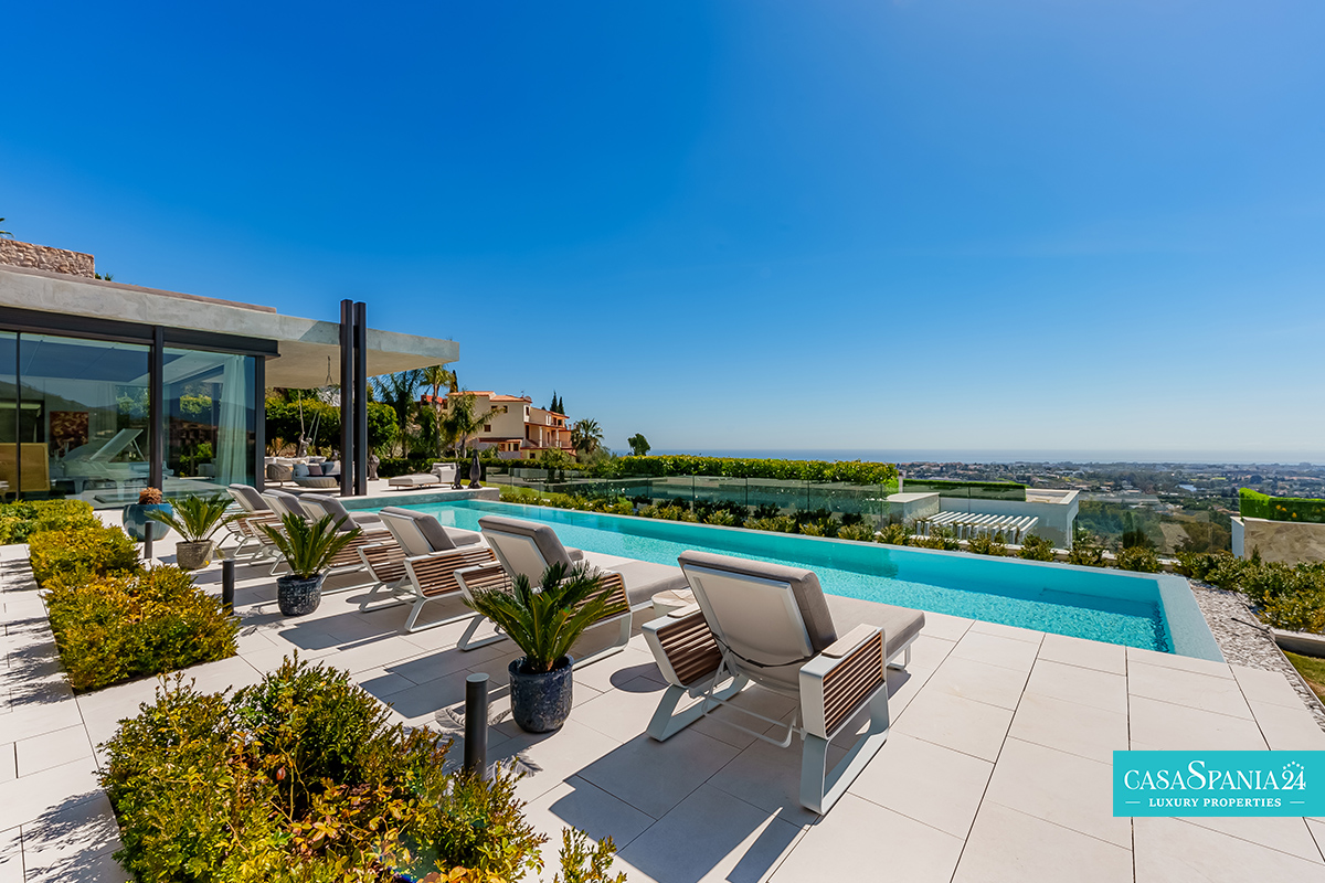 Símbolo del lujo refinado, ubicada en el prestigioso enclave de La Quinta, esta impresionante villa ocupa una generosa parcela de 2.650 m² y ofrece una superficie construida de 1.451 m², diseñada para un estilo de vida exclusivo. La propiedad cuenta con siete elegantes dormitorios, cada uno diseñado para la comodidad y la privacidad absoluta. La suite principal destaca por sus generosas dimensiones, su espacioso vestidor y su baño estilo spa, creando un auténtico refugio para la relajación. Cada estancia se realza con espectaculares vistas panorámicas a la costa mediterránea y a los verdes paisajes circundantes.
