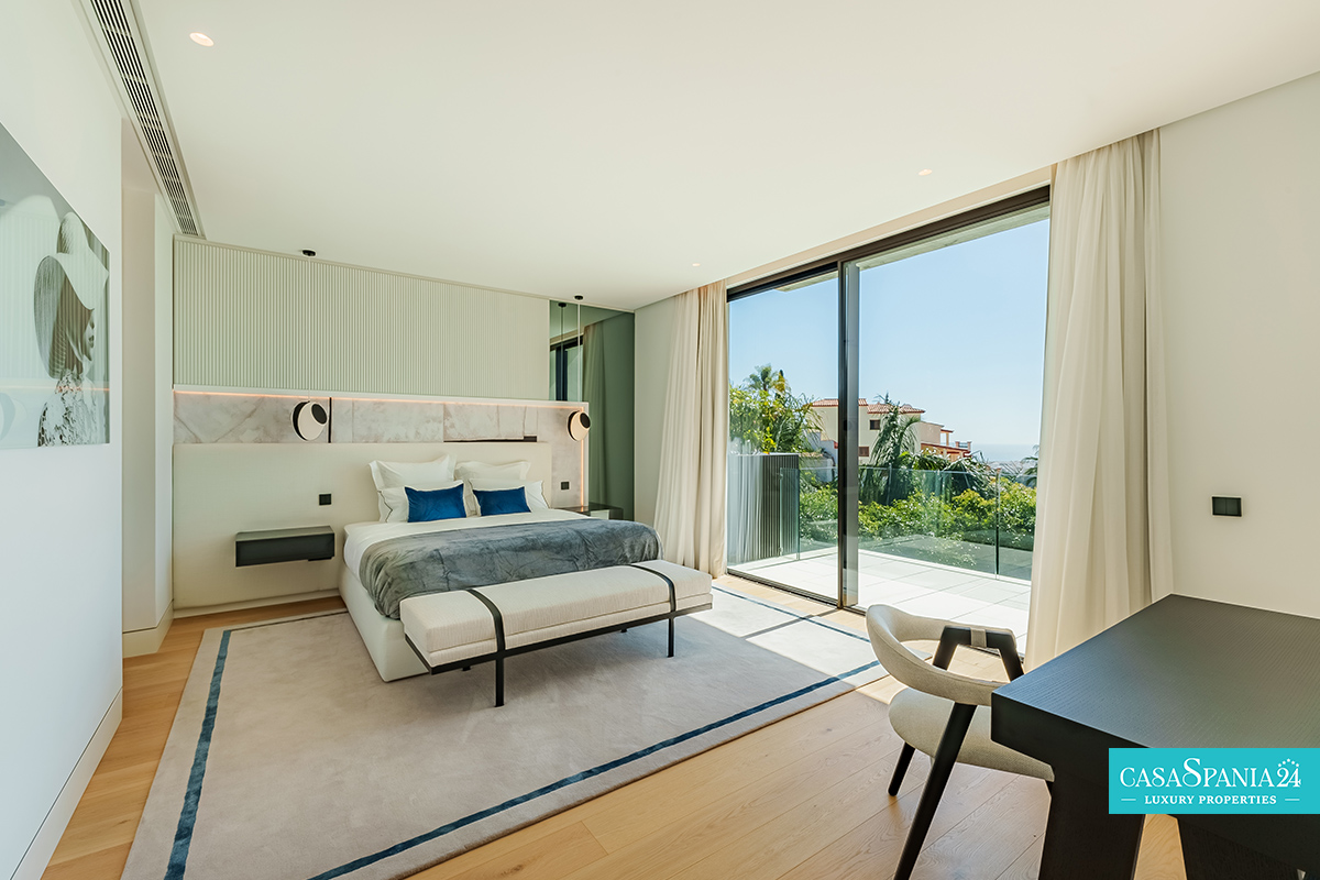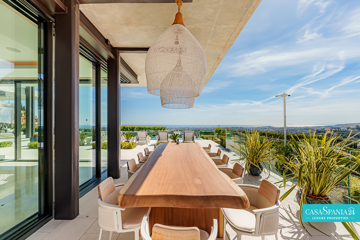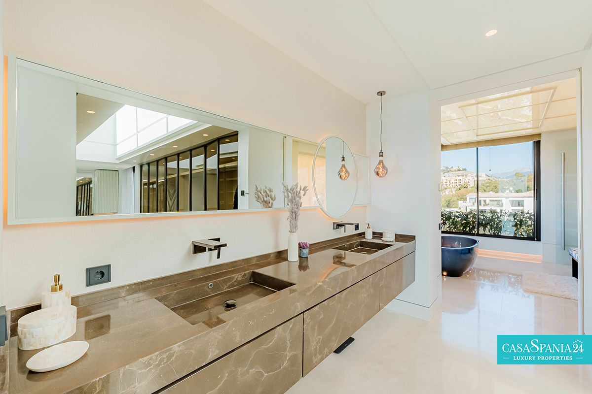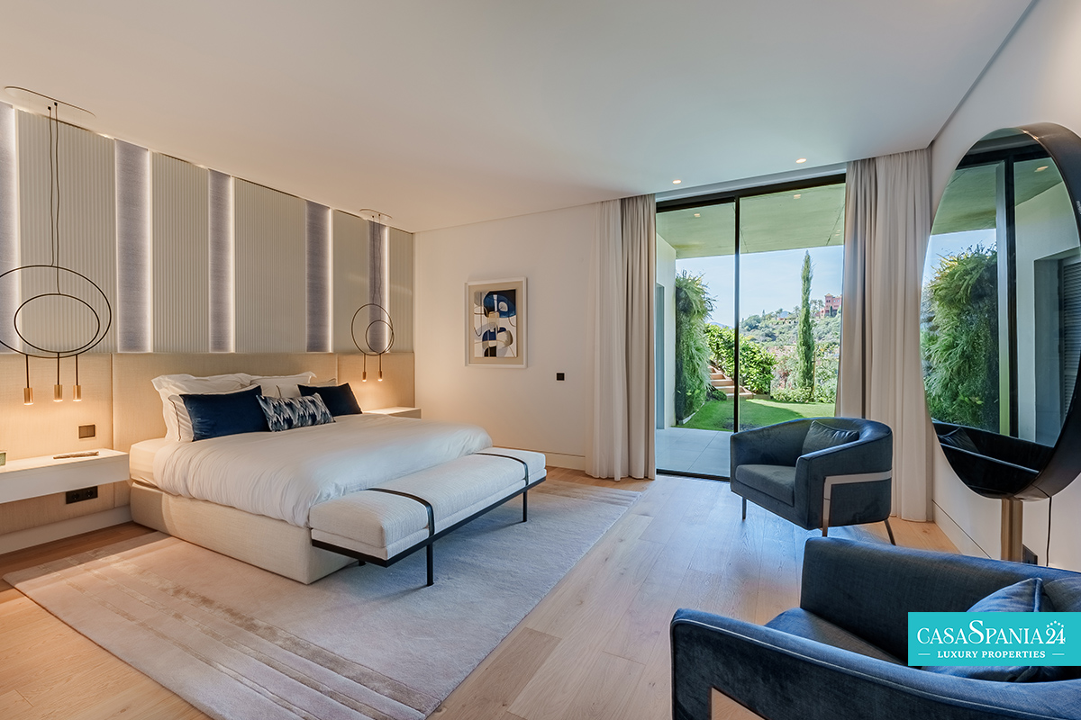 Símbolo del lujo refinado, ubicada en el prestigioso enclave de La Quinta, esta impresionante villa ocupa una generosa parcela de 2.650 m² y ofrece una superficie construida de 1.451 m², diseñada para un estilo de vida exclusivo. La propiedad cuenta con siete elegantes dormitorios, cada uno diseñado para la comodidad y la privacidad absoluta. La suite principal destaca por sus generosas dimensiones, su espacioso vestidor y su baño estilo spa, creando un auténtico refugio para la relajación. Cada estancia se realza con espectaculares vistas panorámicas a la costa mediterránea y a los verdes paisajes circundantes.