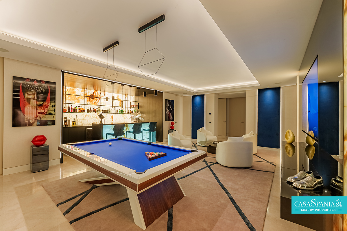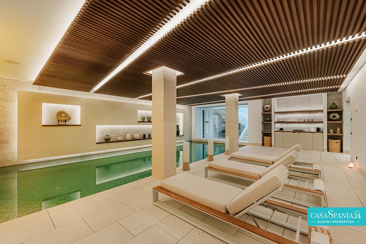 Además de los espacios principales, la villa ofrece instalaciones excepcionales dedicadas a la relajación y al confort absoluto, como bodega, sauna, gimnasio totalmente equipado, despacho privado e incluso un helipuerto. El cuidado jardín complementa la elegante arquitectura de la propiedad, creando un ambiente especial. Ya sea que disfrute del spa interior, de las tardes en el home cinema o de los momentos de relax junto a la piscina, esta residencia redefine los estándares del lujo en cada detalle.